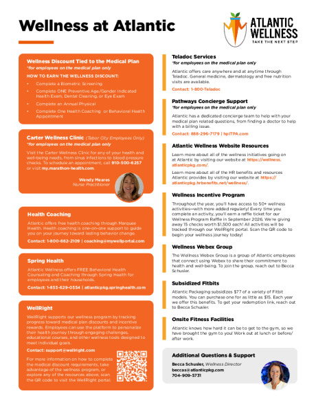 For full details on our Medical Incentive Program and other Wellness Initiatives, visit our wellness page on the benefits website: https://atlanticpkg.hrbenefits.net/wellness